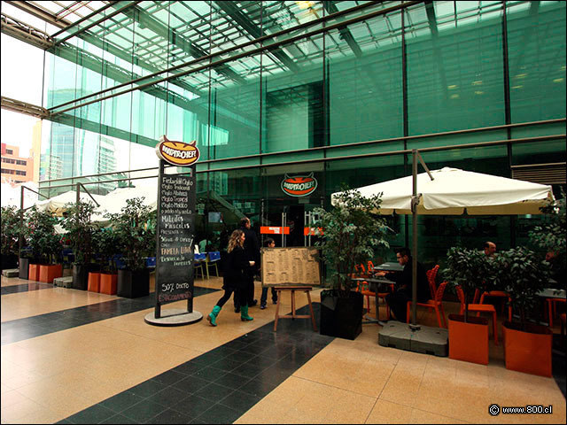 Entrada principal a la sandwichería Maldito Chef por el patio central del Centro Cívico de Las Condes