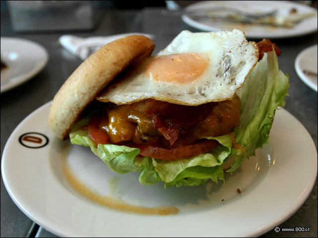 Hamburguesa Mi Rancho con queso cheddar, tocino crocante y huevo frito