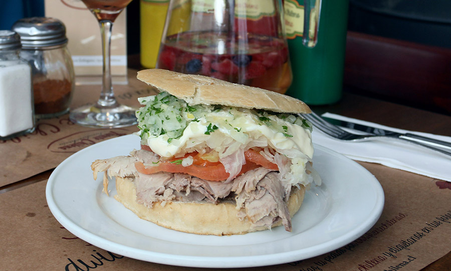 Clásico y esperado, un buen lomito de cerdo en versión completa, es decir, con tomate, harta mayonesa de la casa, chucrut y salsa verde (cebolla picada sancochada con perejil). Un favorito de los comensales.