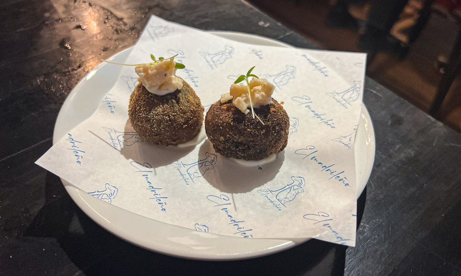 Dentro de la carta de “El Madrileño” se pueden encontrar varias tapas que van desde la clásica tortilla de papas, como también bocata de calamares, croquetas de jibia y también veganas. En los fondos también se encuentran clásicos infalibles como los Callos a la Madrileña y una gran presencia del mar en la Caldereta de Mariscos y la Merluza al pilpil de piure y arroz negro, todo presentado de forma increíble al estilo del Chef. Y para el postre…¡por supuesto que churros con chocolate!