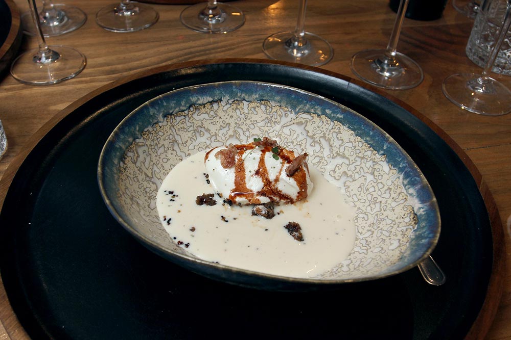 Una leche nevada de autoría potenciada por crocantes de cereal, miel de chañar y el especiado de la rica rica, Fusión y acierto.