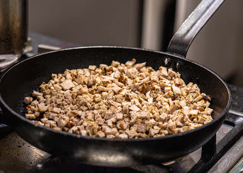 - El cuarto tiempo presentó un filete de cerdo con puré de garbanzos, longanizas y encurtidos, una preparación reconfortante que revisita sabores clásicos desde una mirada actual.