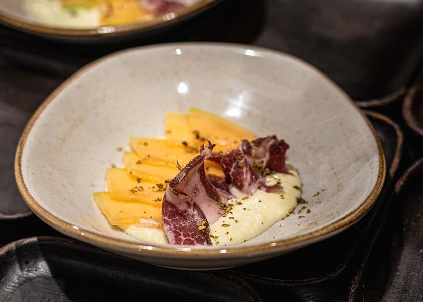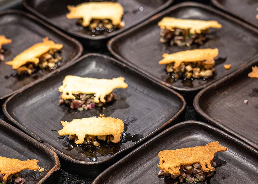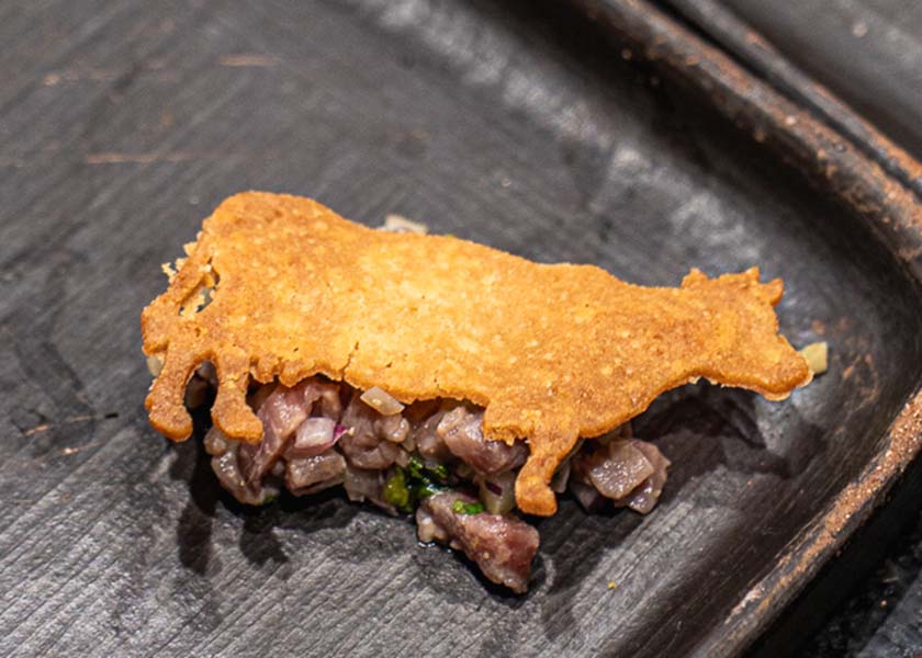 - El viaje comenzó con un helado de choclos y tomate, fresco y sutil, seguido por un snack de malaya de cerdo con chimichurri, intenso y lleno de carácter.