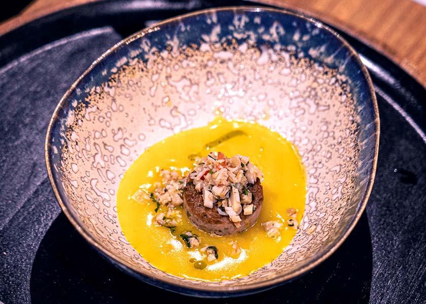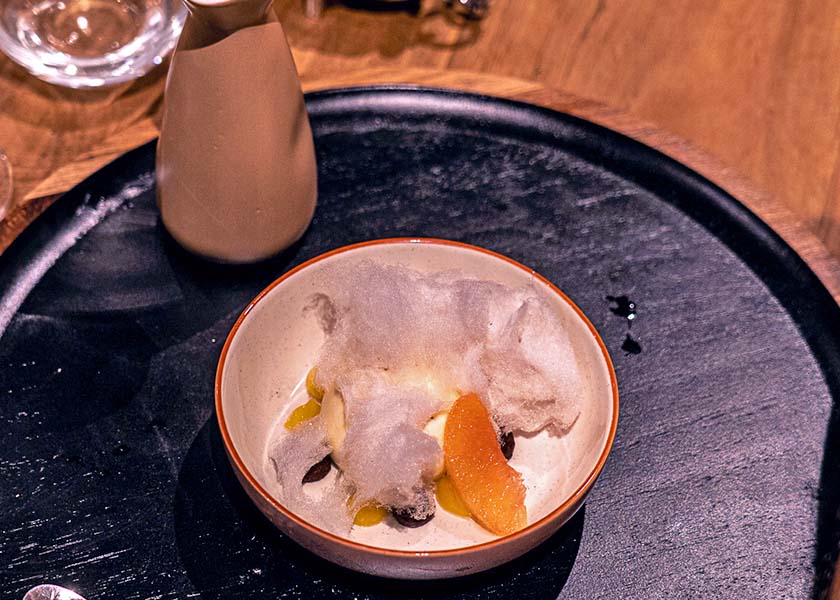 - La experiencia continuó con una crema de almejas, queso de bonito y milcao, un guiño al sur y a la cocina de raíz.