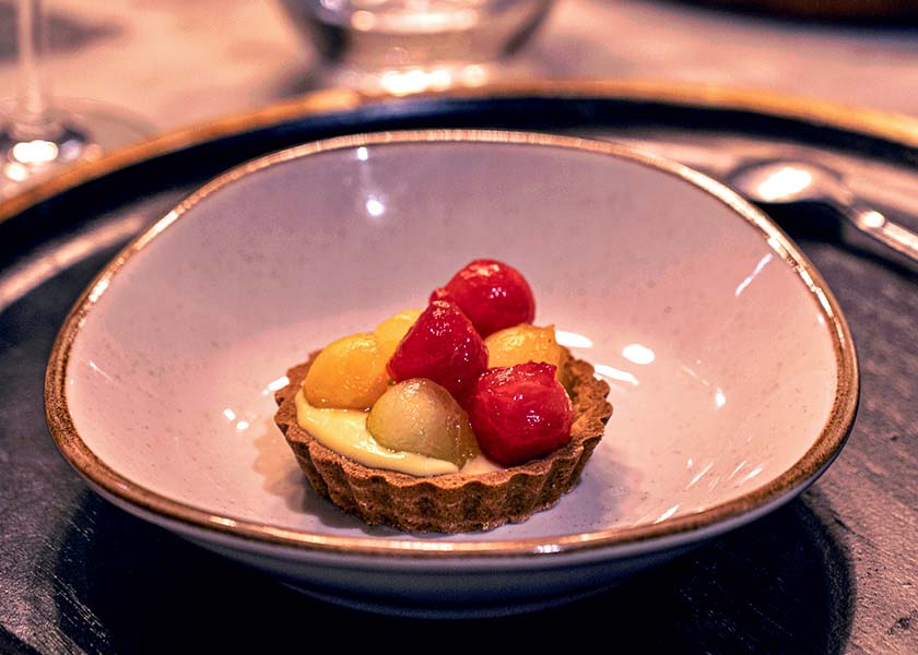 - Para el postre, cítricos de Pica, algodón de rica rica y helado herbal aportaron frescura y identidad nortina, cerrando con una tarta de chocolate, frutas maceradas y queso de cabra, equilibrando dulzor, acidez y profundidad