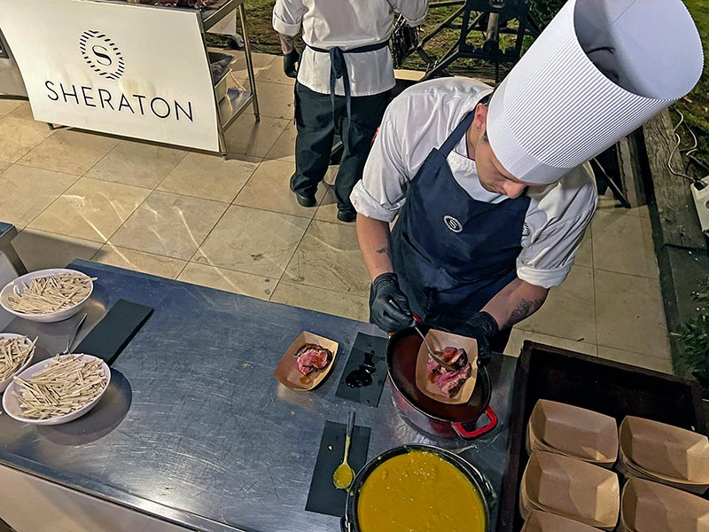 La gastronomía también tuvo un rol protagónico con la “Sheraton Meat Experience”, liderada por el chef ejecutivo Gustavo Villoldo, quien desplegó cinco estaciones de fuego y brasas, generando una experiencia culinaria que potenció el maridaje con los vinos. A esto se sumó el espacio del Bohío, reforzando la conexión entre vino y cocina en cada detalle.
