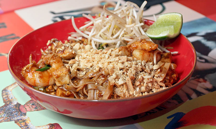 Aromático, goloso y con una pasta en su punto se luce este pad thai original, del que también hay de pollo, camarones, vegetariano y vegano. Esta versión, de sabores y texturas bastante fieles a la original con un equilibrio entre sus puntos dulces, salados y ácidos, va con los fideos de arroz salteado en una salsa Pad Thai propia, pollo, tofu, camarones, verduras en su punto, diente de dragón y el infaltable toque de maní.