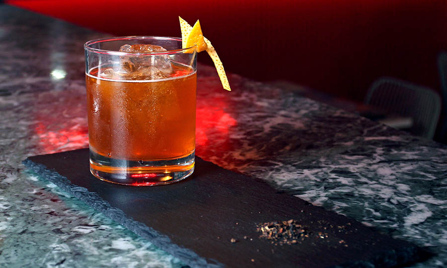 El cocktail de autor de la casa. Está hecho con whisky, syrup de té tailandés, dos elementos que juegan muy bien y se complementan con las notas ahumadas de esta receta que también lleva una dosis de limón.