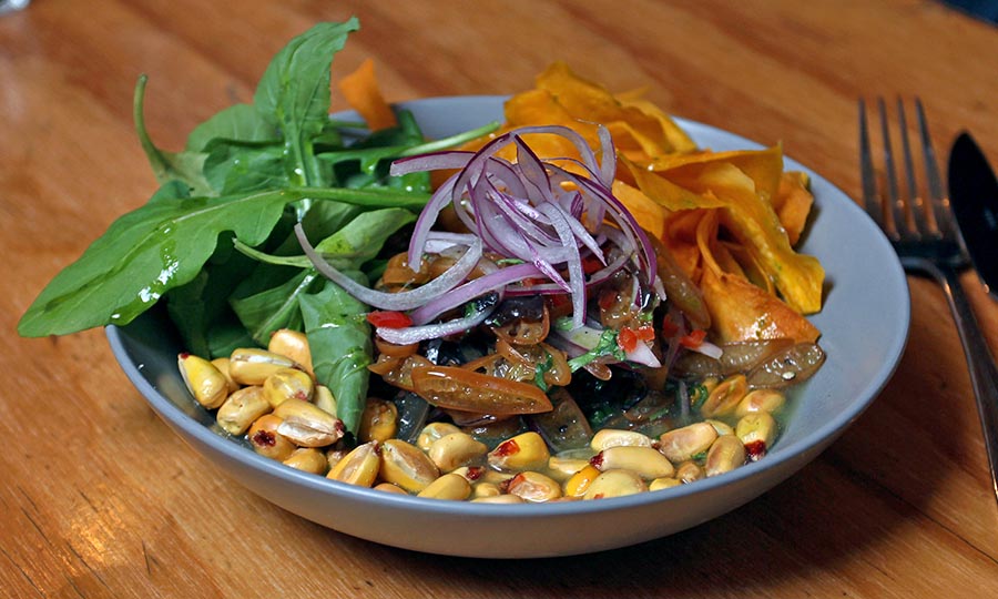 Power, con texturas, frescor y crunch llega a la mesa este ceviche vegano, creado a base de cochayuyo, algas y lo que sería una leche de tigre, pero de vegetales.