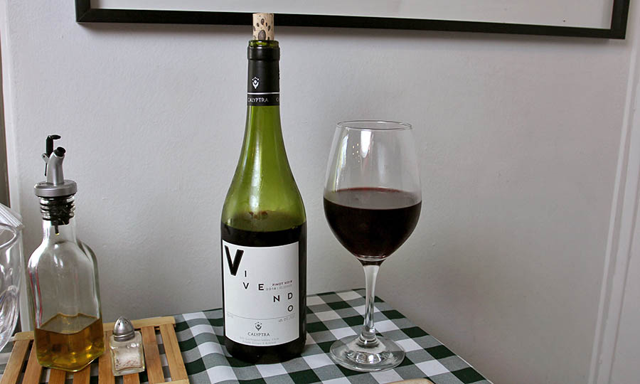Una muy carta acotada de vino, pero bien elegida por su dueño. Por copa un Calyptra Pinot Noir Vivendo. Bien.