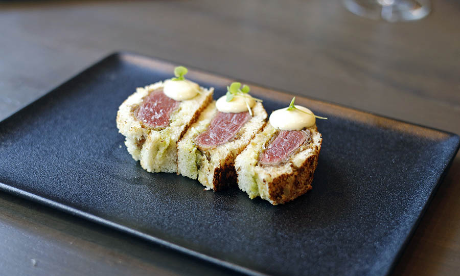 Elegante y delicada versión de este clásico sándwich japonés que aquí viene perfectamente templado y de fácil comer.