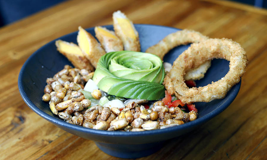 En su propuesta no buscan emular pescados o carnes, trabajan los vegetales con su identidad propia potenciando los sabores y texturas de granos, plantas y proteínas vegetales que complementan con un surtido interesante de salsas veganas.