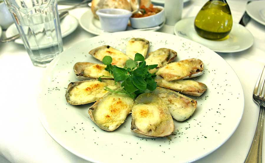 Las clásicas machas gratinadas acá se muestran correctas y con el sabor de antaño, con un queso rallado que podría mejorar.