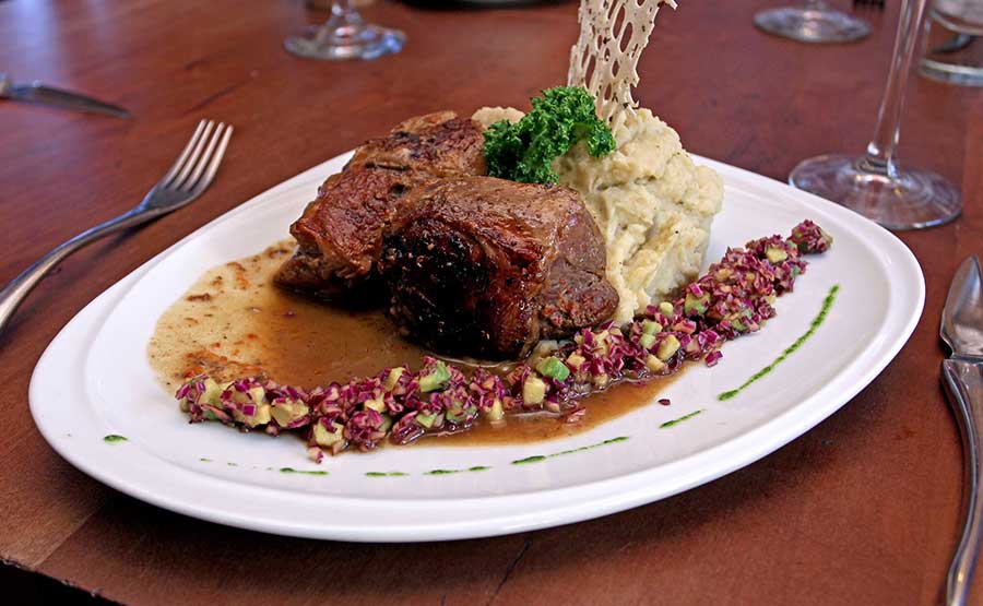 Acá encontramos una gastronomía ecléctica, que va desde pescados y mariscos hasta carnes cocinadas por horas, pasando por platos vegetarianos bastante tentadores, todo con un pequeño guiño a la cocina patogónica.