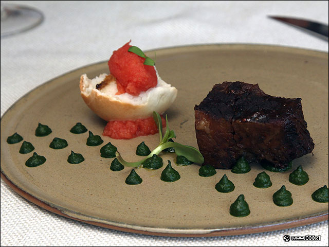 Sobrecostilla braceada con pan con tomate