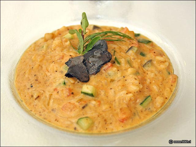 Verduras y escamas de trufa en Risotto alla Bergamasca