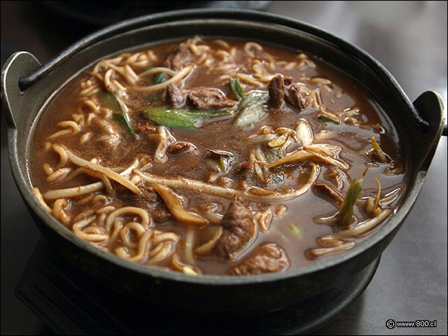Fideos raen, caldo de vacuno, verduras y dados de res