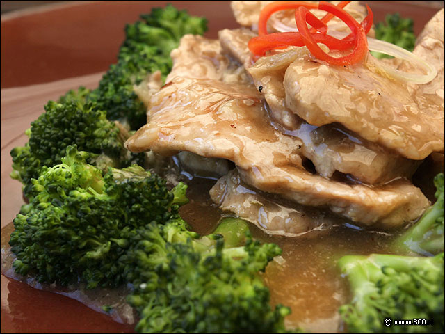 Láminas de Cerdo salteadas con ajo y servidas con brócoli
