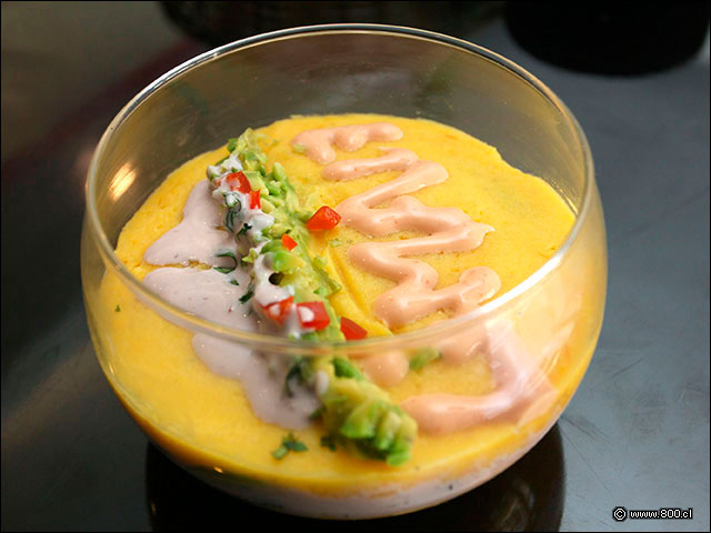 Causa del Día, papa machacada, camarones, mayonesa y palta