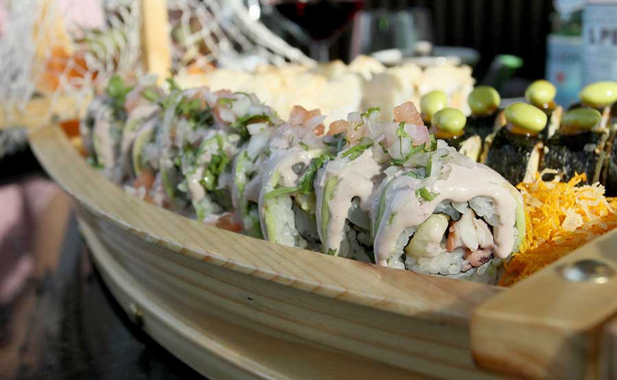 Un verdadero pulpo al olivo convertido en maki. Pulpo, palta y choclo peruano envuelto en laminas d palta y terminado con una mayonesa de aceitunas amargas y una suave chalaquita. Una receta sabrosa, pero que no pasa de lo correcto.