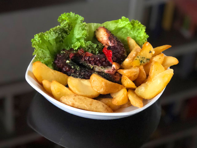 Tentáculos de pulpo a la parrilla.