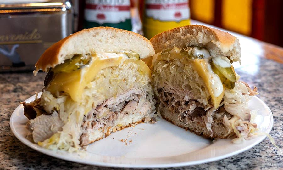 Un Lomo de cerdo a lo Pablo (chucrut, queso, mayo y pepinillo)