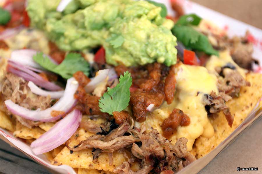 En este lugar la parrilla está presente hasta en los picoteos, como lo demuestran esta cama de nachos con pulled pork, salsa de queso, pico de gallo y palta