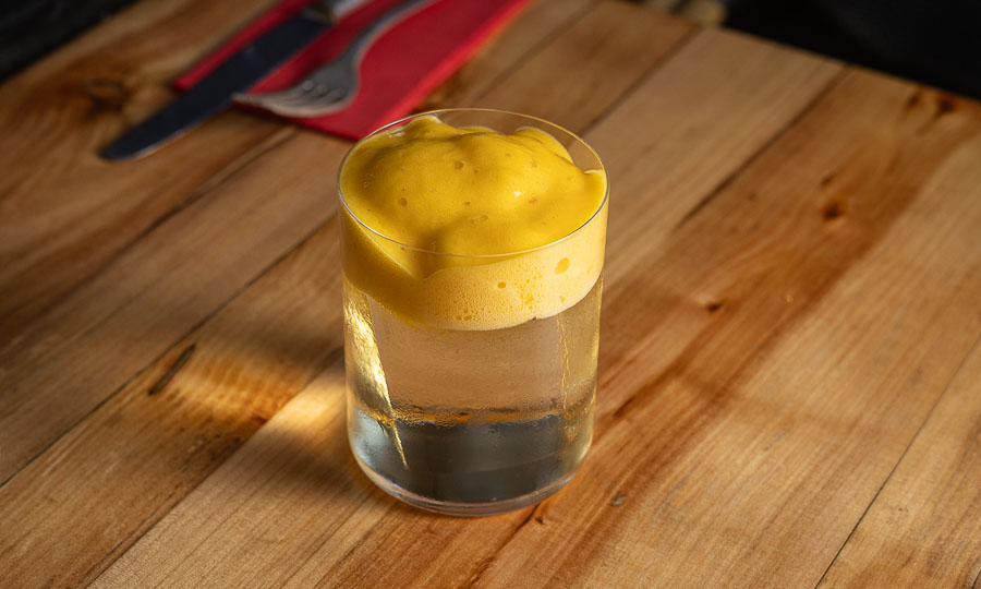 Un clásico de la cultura chilena en un vaso, la sopaipilla pasada, que se hace con un fatwash elaborado con whisky, zapallo camote y licor de chancaca hecho en casa. Suave, dulce y con ese amargor necesario para darle el toque al cóctel.