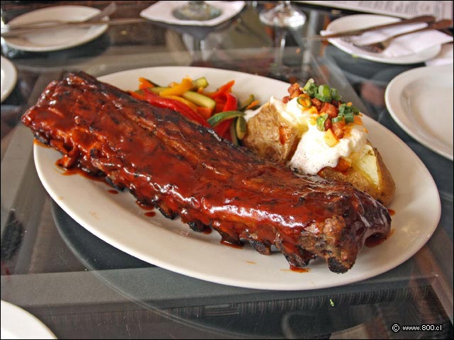Primer plano de costillas de cerdo con salsa BBQ de Tony Roma´s