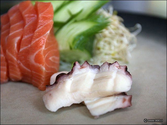 Jengibre sin colorantes y wasabi em el Sashimi Mixto