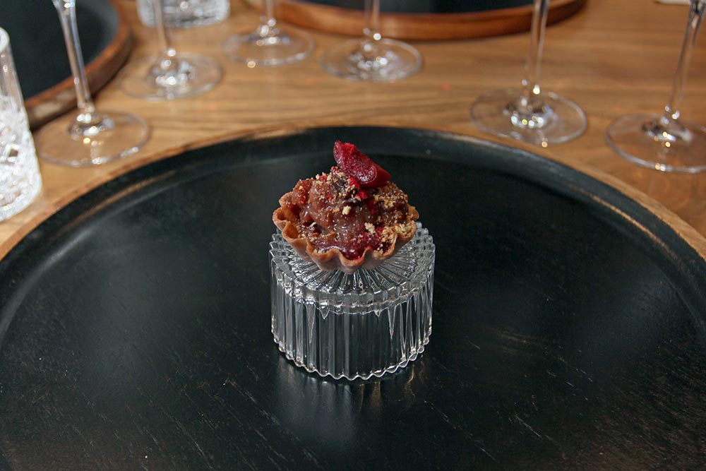 Tártaro de ciervo y pure de cereza. Un plato cremoso de suaves texturas en contraste de acidez agridulce y cárnico.
