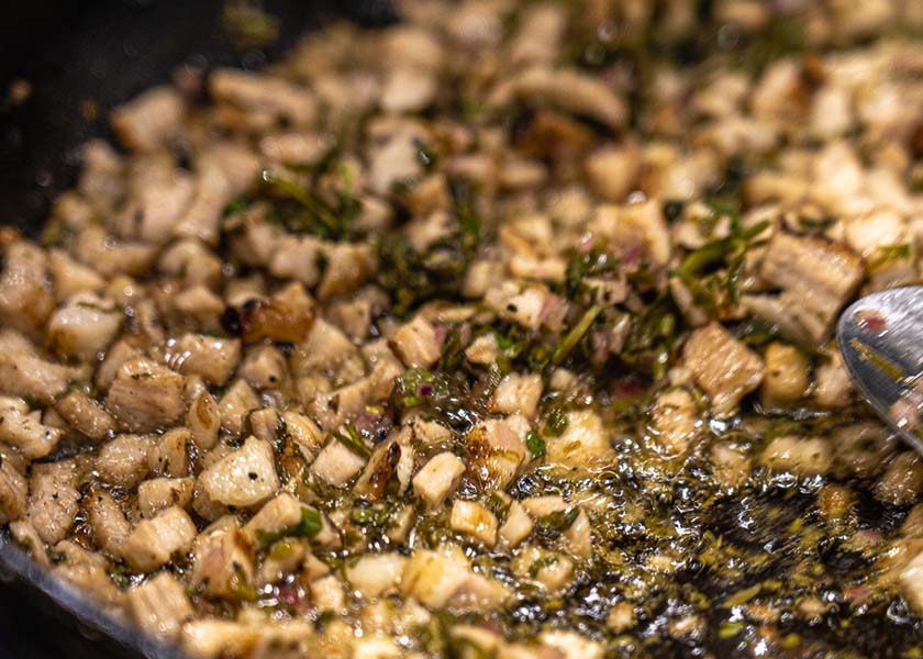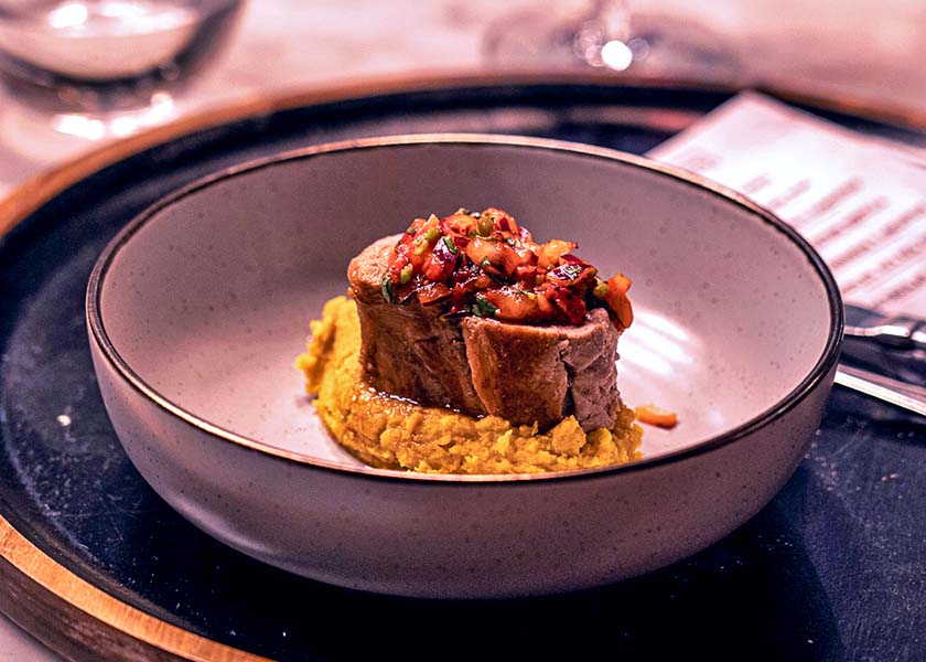 - El cuarto tiempo presentó un filete de cerdo con puré de garbanzos, longanizas y encurtidos, una preparación reconfortante que revisita sabores clásicos desde una mirada actual.
