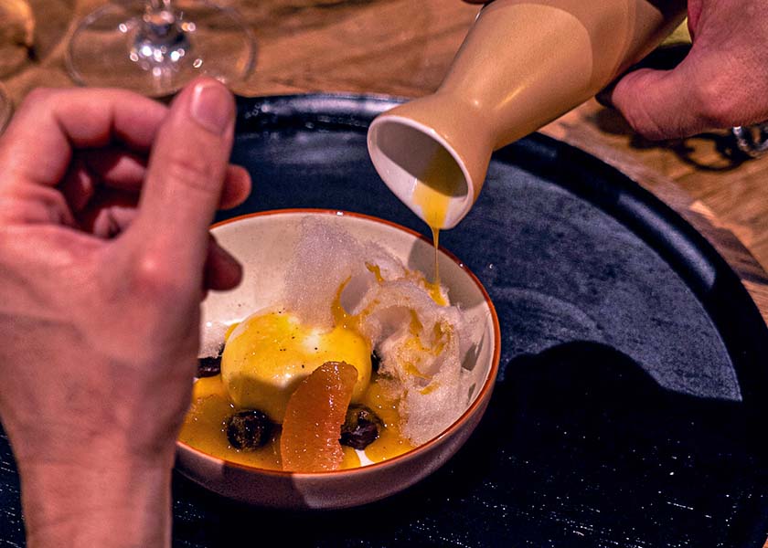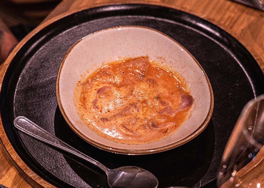 - La experiencia continuó con una crema de almejas, queso de bonito y milcao, un guiño al sur y a la cocina de raíz.